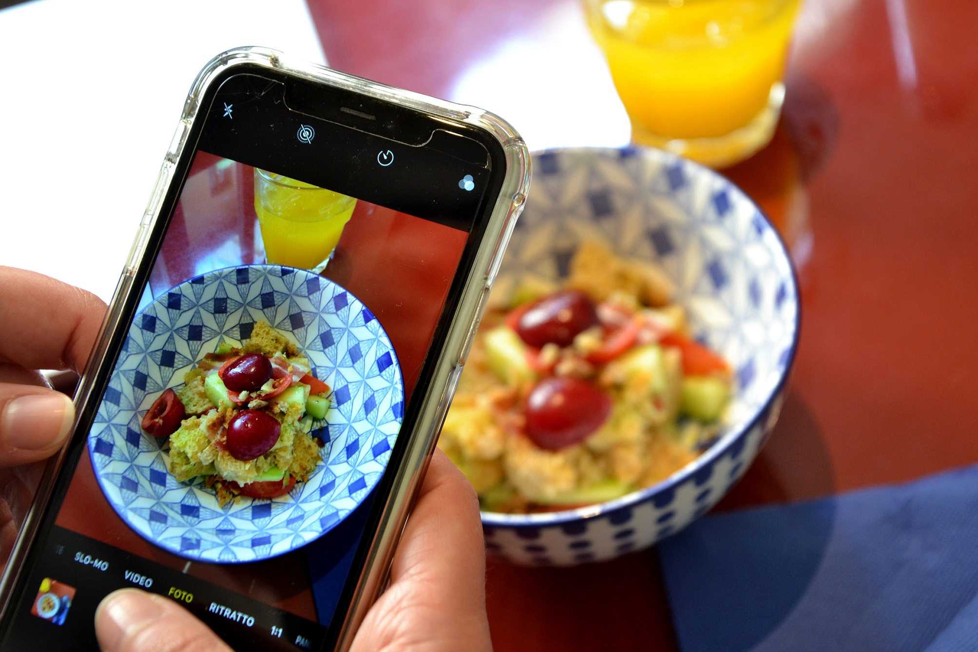 Il menu pensato per il primo appuntamento prevede per iniziare l’“Uovo toscano benedetto”, versione rivisitata in chiave locale dell’uovo alla Benedict, ovvero pane toscano arrostito con sugo di arrosto, ragù di finocchiona, uovo pochè e crema di pecorino al lime. A seguire “Panzanella ciliegie e bacon”, realizzata con pane integrale, pomodoro, cetriolo, basilico, ciliegie e aceto di mela, olio EVO, sale Maldon, crumble di pane e bacon arrostito. Come primo piatto “Gnocchetti di patate con salsa al triplo pomodoro, burro e acciuga”, seguito da “Faraona-cake con salsa di scalogno e aceto balsamico”, un crab cake che sostituisce il granchio con la faraona, servito su insalata al balsamico e salsa di scalogno e balsamico. Per una dolce conclusione due dessert: il “Banana e Fiordisalvia Bread” classico banana bread, ma con fiori di salvia al posto della cannella, tostato al momento e accompagnato con due confetture e burro salato; e infine il “Tiramisù doppia panna e fragola”, con pangenoise alla fragola, servito panna montata, un velo di cacao e un pizzico di liquirizia.