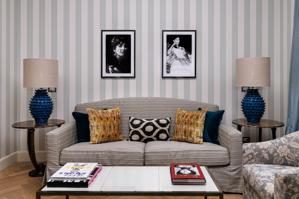 Il percorso parte dalla lobby dell’hotel fino al salotto lounge e si snoda fino al ristorante Irene, per concludersi nella suite presidenziale, dove troviamo il più grande amore artistico di Franco Zeffirelli, Maria Callas, ritratta in foto insieme al regista e, in due fotografie prese dal set de “La Traviata” (1958) e della “Tosca” (1964).