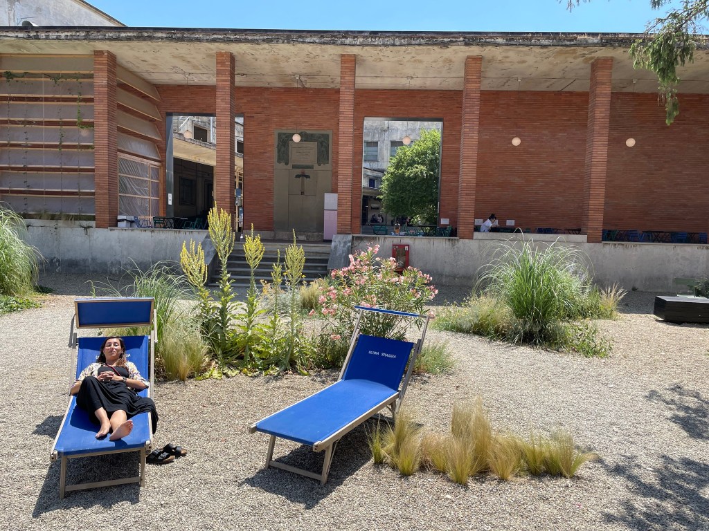 Tra le novità dello spazio una gelateria Sammontana, ricavata all’interno di un vecchio chiosco proveniente da un bagno della costa tirrenica, e 20 lettini e sdraio griffati “Ultima spiaggia” a disposizione del pubblico che li vorrà usare per un’esperienza di visione differente. Un gioco di parole e di fruizione dei film che esorcizza la crisi della modalità di proiezione pubblica dei film.