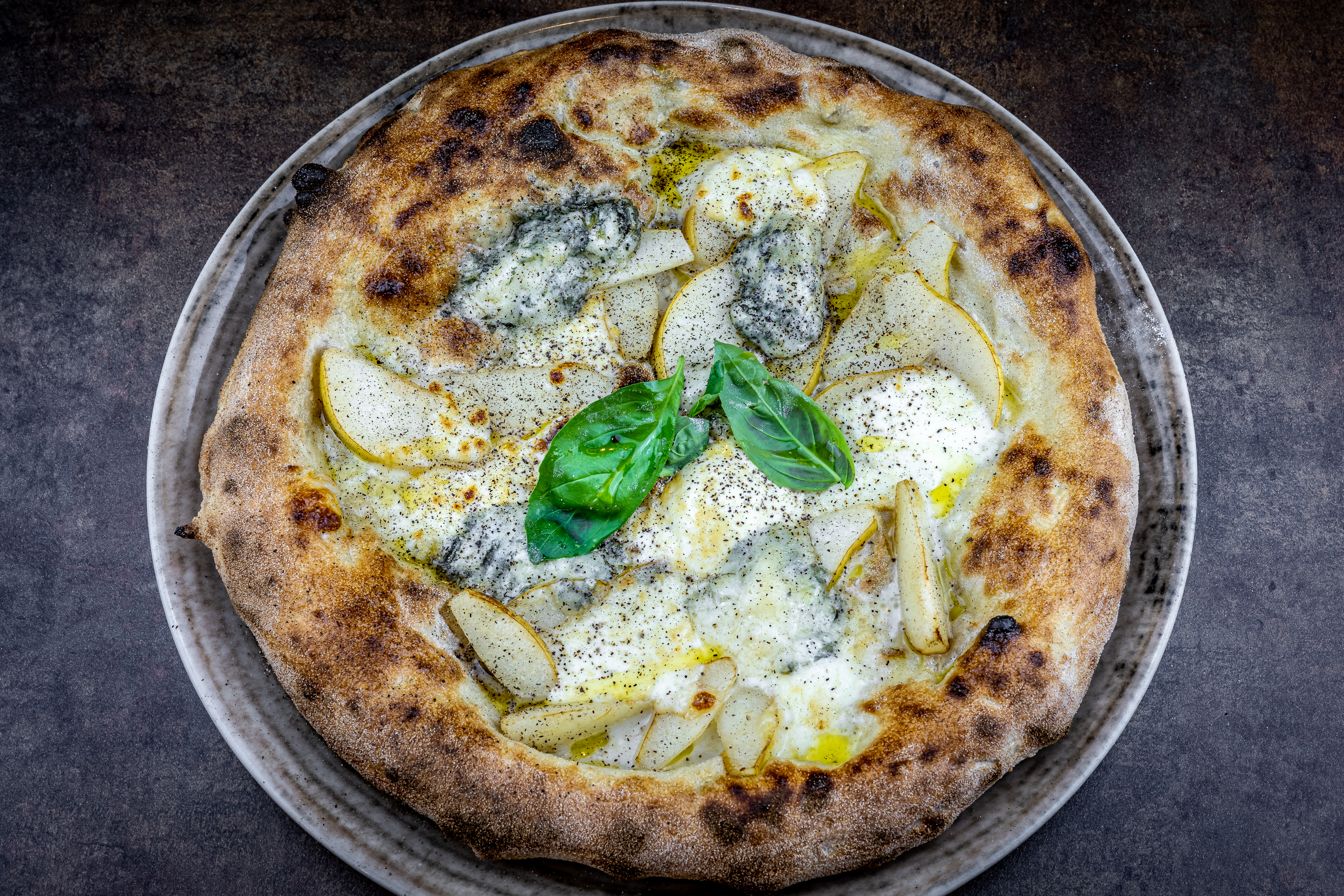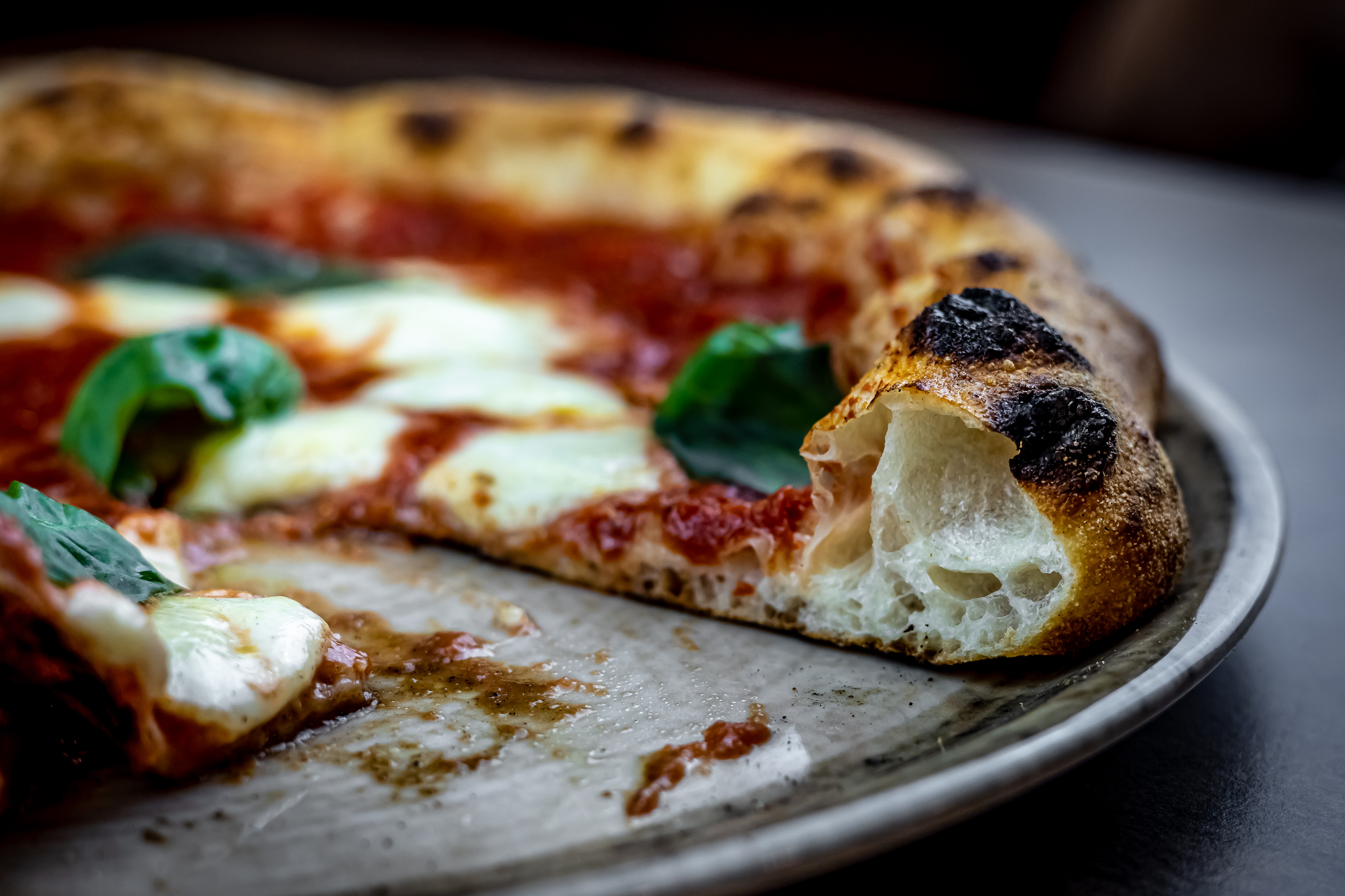 “L’impasto è stato il mio primo amore e resta per me la sfida più intrigante” – ha detto Gianluca Vella. “Creare una pizza che abbia sempre la stessa qualità non è frutto del caso ma di (tanto!) studio. Il blend, la temperatura dell’ambiente, l’umidità, la durezza dell’acqua: sono tantissimi gli elementi da tenere in conto. I miei impasti, non sono scenografici, non si possono lanciare in aria e far roteare come frisbee. La mia pasta va trattata delicatamente, accarezzata, come fosse una crema. Creo i miei impasti con l’80% di acqua, pochissimo lievito (quasi il 10% degli impasti normali), un blend unico di farine biologiche, una lunga lievitazione: tutto questo, miscelato con pazienza e adattato giornalmente alle condizioni ambientali, crea ogni volta una piccola magia che firma il palato dei miei ospiti”.