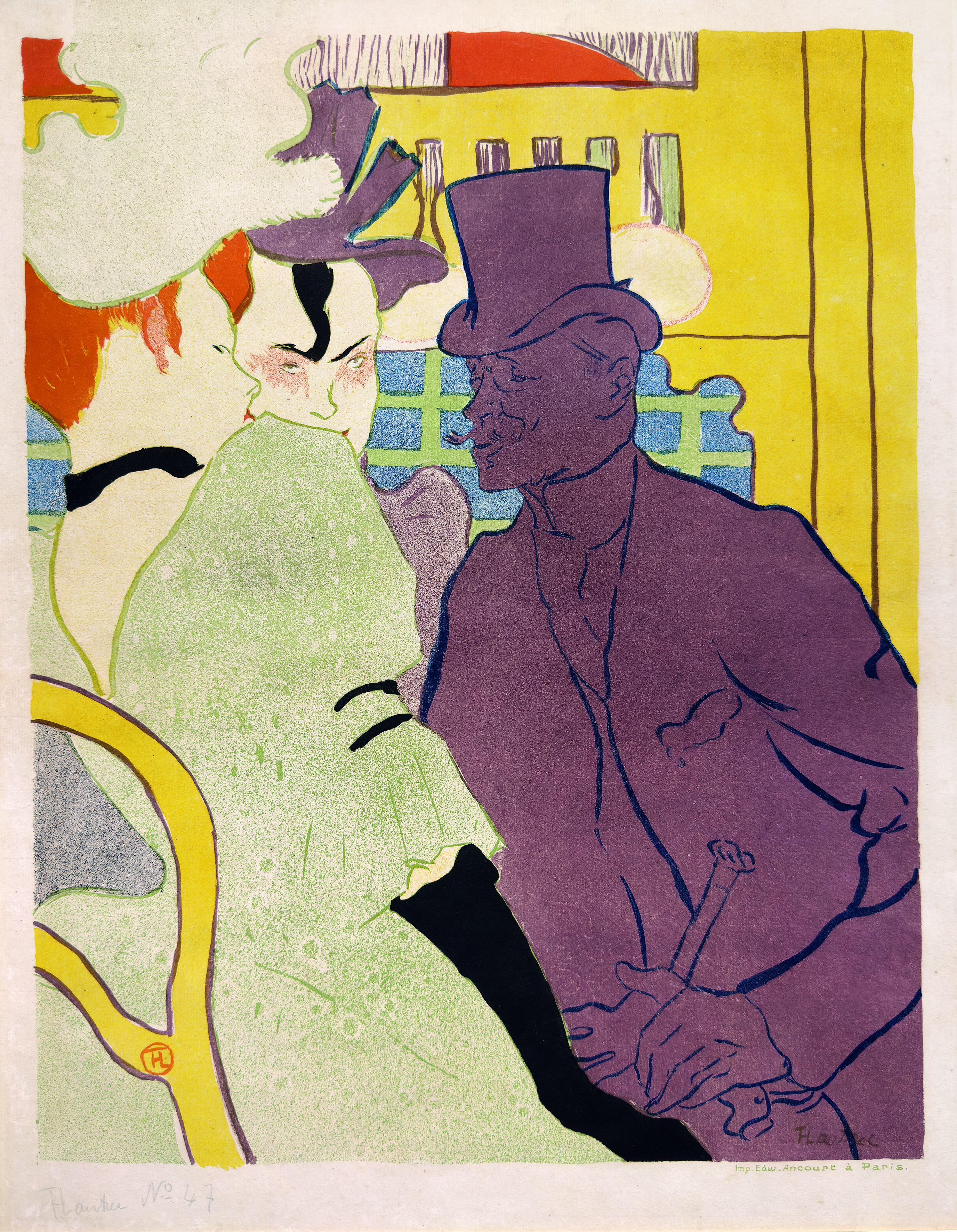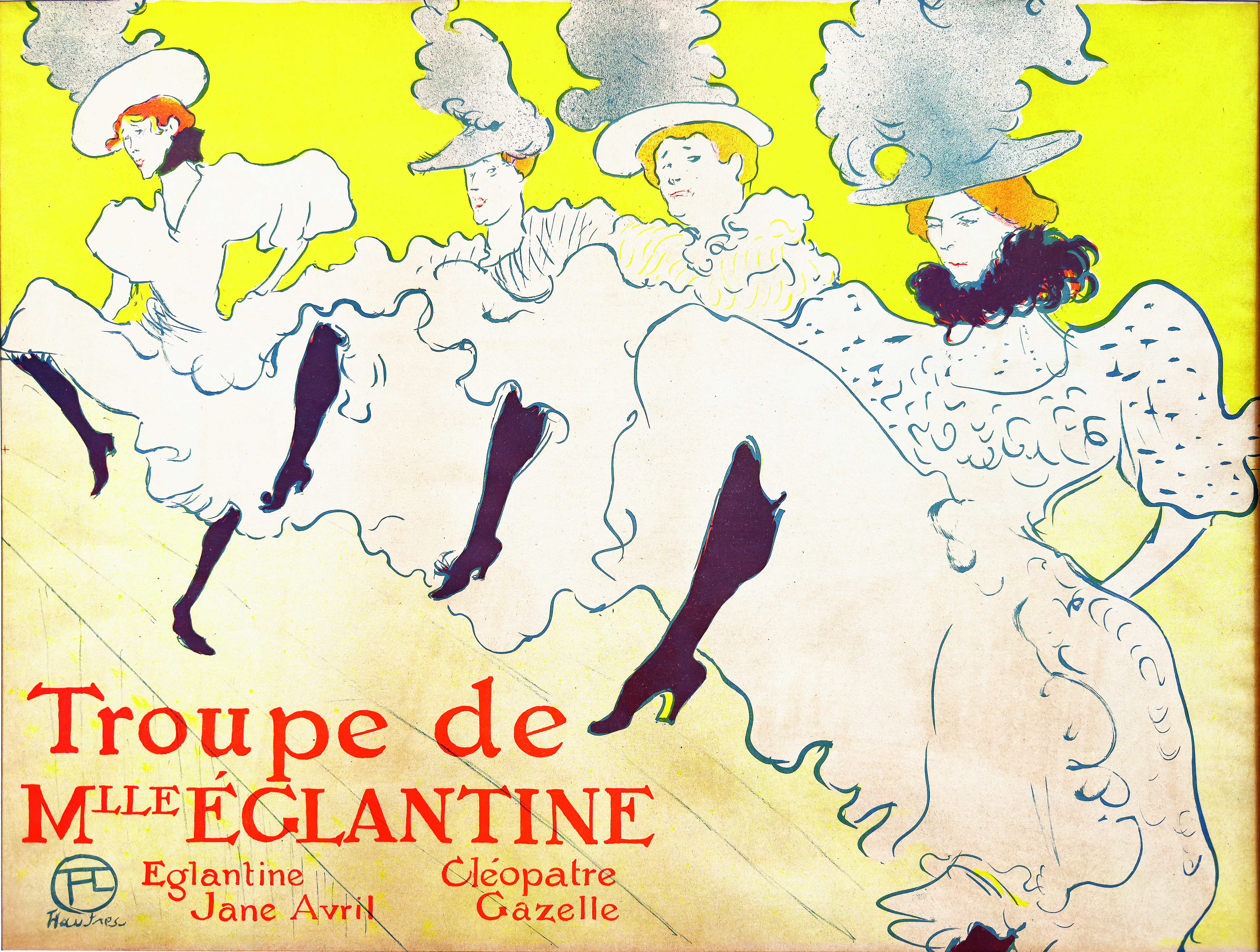 Tra le opere più celebri esposte – in prestito dalla Collezione Wolfgang Krohn di Amburgo– si possono scorgere litografie a colori come Jane Avril, 1893; manifesti pubblicitari come Troupe de Mademoiselle Églantine del 1896 e Aristide Bruant nel suo cabaret del 1893; disegni a matita e a penna, grafiche promozionali e illustrazioni per giornali, come in La Revue blanche del 1895) diventati emblema di un’epoca indissolubilmente legata alle immagini dell’aristocratico visconte Henri de Toulouse-Lautrec, alcune di queste provenienti dal Museo Toulouse-Lautrec di Albi.