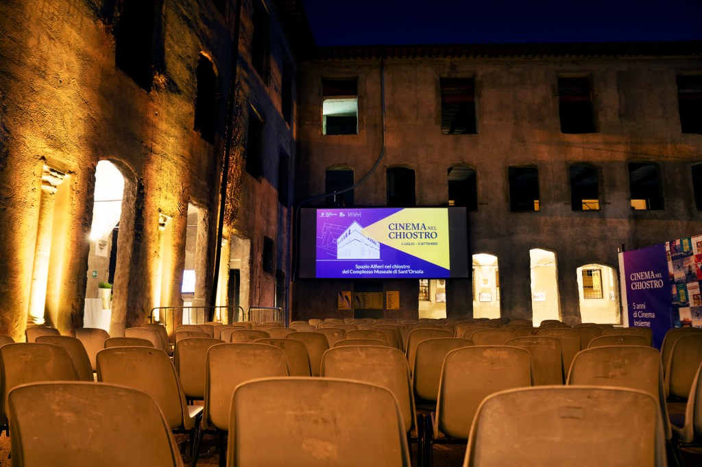 L’arena cinematografica estiva a cura dello Spazio Alfieri “Cinema nel chiostro” approda nel cortile dell’ex convento di Sant’Orsola, partecipando alla rinascita di uno spazio cittadino a lungo dimenticato nel cuore del centro storico, e finora chiuso al pubblico. Con una programmazione che spazia dai migliori film d’autore della passata stagione, insieme a retrospettive e ospiti, il programma ha inaugurato nel segno di Alice Rohrwacher, a cui l’arena dedica una retrospettiva nel mese di agosto.